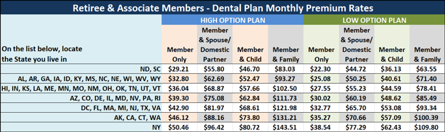 Dental Plan is not available in the following states: MT,NH,OR,SD, LA, AK.